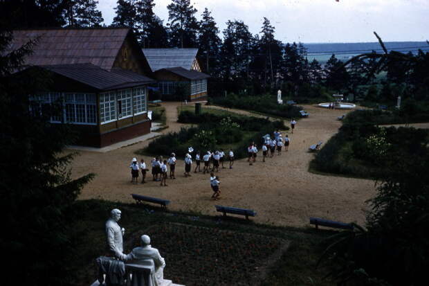 16. А это пионерлагерь тех лет. Обратите внимание на сохранившуюся ещё статую со Сталиным на переднем плане — в лагере детям рассказывали, что всё что они видят вокруг — они имеют лишь только благодаря товарищу Сталину, а если бы не он и не советская власть — то на месте СССР была бы чёрная дыра, состоящая из вонючей антиматерии.