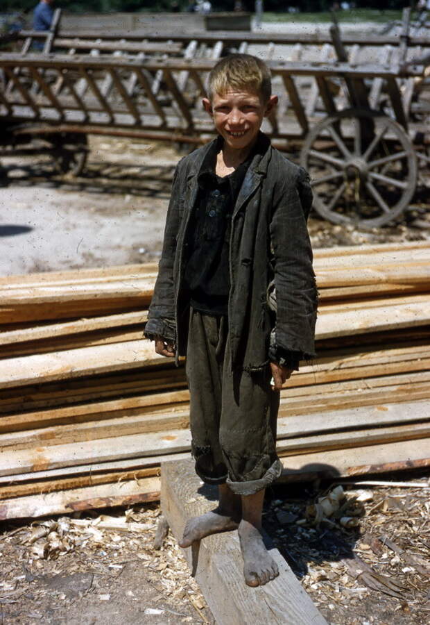 12. Этот же мальчик и девочка помладше. Обратите внимание, как одеты дети, а также на их обувь (вернее, её отстутствие). Каждый раз, когда вижу такие фото, вспоминаю идиотскую фразу, которую форсят сталинисты — "Сталин принял страну с сохой, а оставил с атомной бомбой".