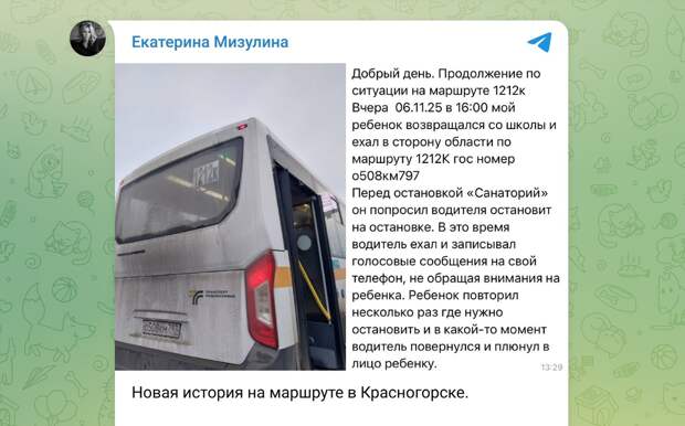 Злополучный автобусный маршрут в подмосковном Красногорске, кажется, окончательно превратился в театр абсурда и филиал криминальной хроники. Сначала один "ценный иностранный специалист" за рулём запускает руку под куртку девятилетней девочке, а следом его коллега, на том же маршруте, смачно плюёт в лицо другому ребёнку за вежливую просьбу.