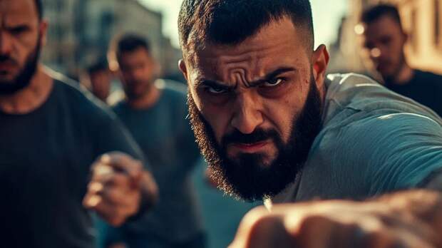 Затем один из нападавших толкнул сотрудника полиции, а другой счёл это подходящим моментом, чтобы ударить полицейского со спины. Началась потасовка.