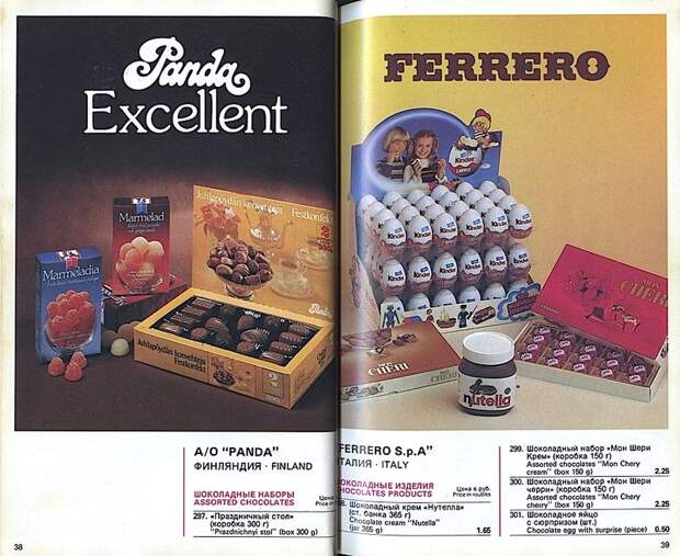 Отдельный большой класс продуктов, которые я решил объединить в один абзац, чтобы не делать раздел слишком длинным. Яйца "Киндер сюрприз", вкуснейшие желатиновые конфеты, белый шоколад, растворимый кофе (гранулированный и порошковый), всевозможные виды конфет, печенья, крекеров и прочего подобного уже давно существовали в развитом мире. Даже баллоны с готовыми взбитыми сливками в развитом мире давно уже существовали — но в совке всего этого не было. Все эти продукты появились на наших столах только в девяностые годы.