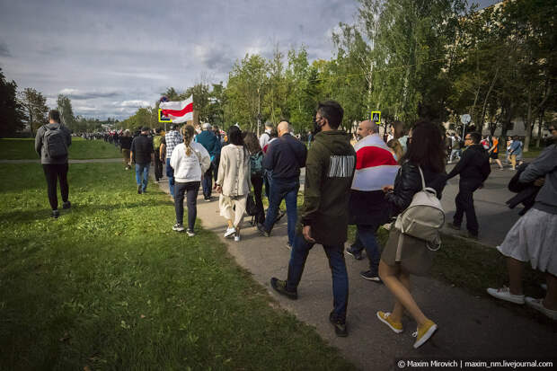 Вчера состоялся очередной большой воскресный марш протеста, на который вышлю люди во всех городах, и на который в Минске вышли сотни тысяч человек. Марш 13 сентября назывался "Марш Героев" и частью плана был "поход на Дрозды" — так называется местность в Минске, где стоят коттеджи приближённых Лукашенко. В частности, протестующие планировали спросить у "бабы Лиды" (главы ЦИК Лидии Ермошиной) — зачем она нарисовала "80% за". Но не всё пошло по плану — часть протестующих попала в ловушку на улице Нововиленской... Но обо всём по порядку.