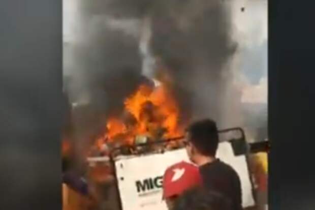 Фуру с гуманитарной помощью на границе Венесуэлы и Колумбии сожгли. Об этом сообщается в Twitter