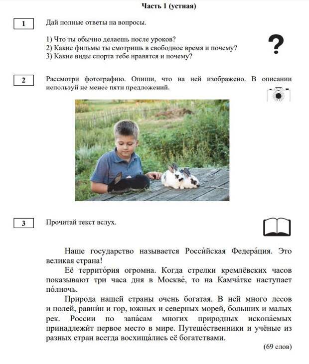 Что касается самих тестов на знание русского языка детей мигрантов для приёма в школы, то Федеральный институт педагогических измерений (ФИПИ) опубликовал демонстрационные варианты, которые, честно говоря, вводят в ступор, потому что вот те, что ниже, это для 5 класса, то есть для детей примерно 12 лет, а выглядят, как для 1-2 класса.