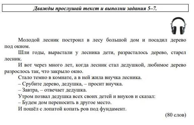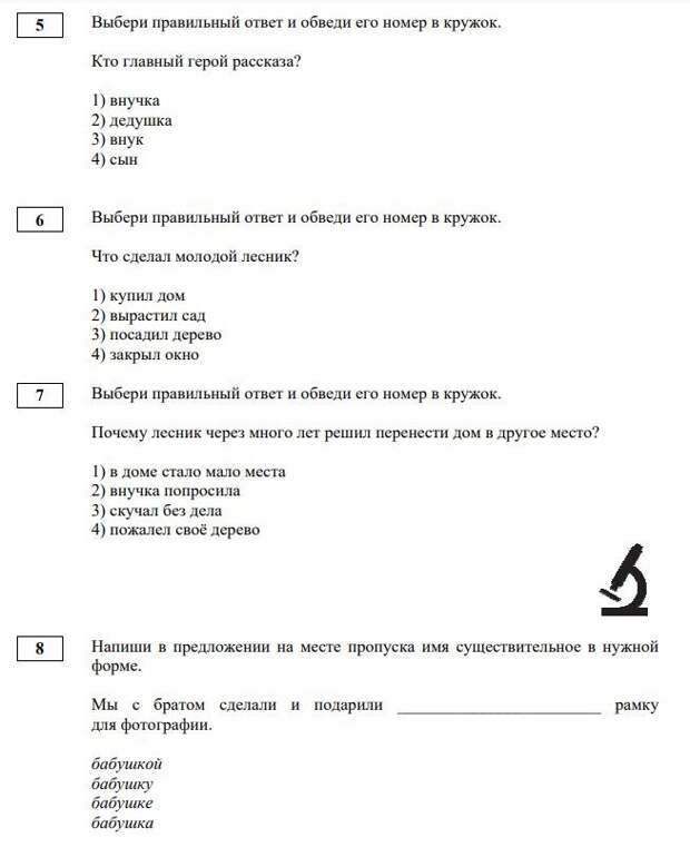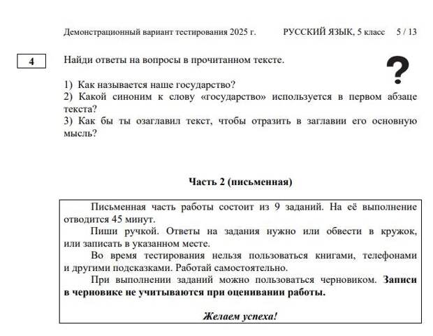 Фрагмент теста по русскому языку для детей мигрантов, 5 класс