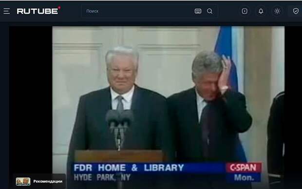 Вашингтон, 1995. Клинтон смеётся до слёз, эмоции Ельцина непонятны. Скриншот: рутуб-канал karakum21