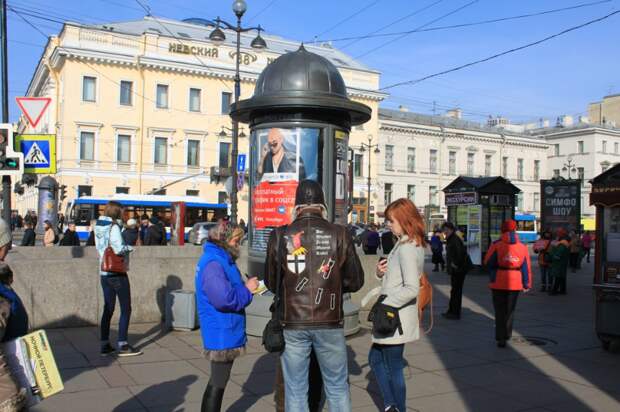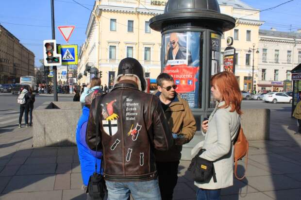 Сегодня в самом центре Питера, около Гостиного двора, где обычно толпятся туристы, покупающие билеты на экскурсии, обратил внимание на молодого человека в необычной куртке.