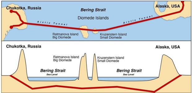 А вот глубина у Берингова пролива подходящая: около 50 метров, как в Ла-Манше, где туннель уже есть.