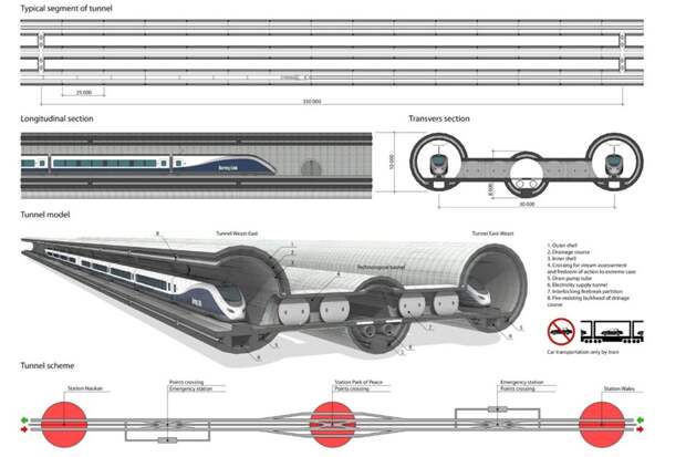 Кирилл Дмитриев показал и современный план туннеля по тому же маршруту, сообщив: это может быть «туннель Путина-Трампа» стоимостью в $8 млрд. А построить его реально, если использовать технологии Boring Company. В посте спецпредставитель президента тегнул Илона Маска - речь шла о его компании.