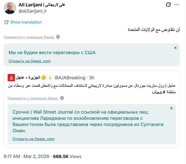 Иран оказался крепким орешком, блицкрига явно не получилось. Вчера Трамп заявил, что Иран снова запросил возобновление переговоров и он на это согласился. Ряд западных СМИ предполагают, что его заявления о переговорах являются попыткой скрыть провал: