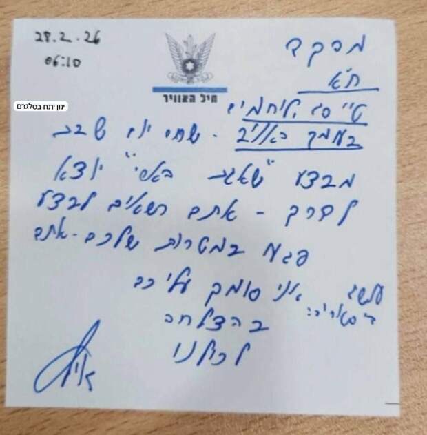 Я обращаюсь к вам, граждане Израиля, слушайтесь указаний командования тыла, в ближайшие дни в операции "Рык льва" нам всем потребуется выдержка и сила духа. Вместе мы устоим, вместе будем бороться и вместе обеспечим вечность Израиля.