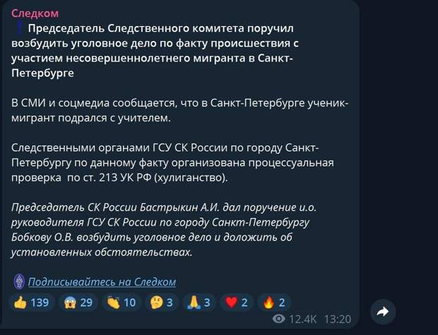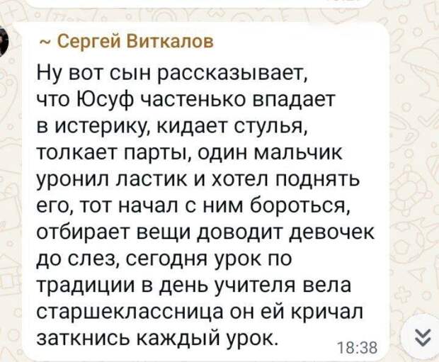 А в Санкт-Петербурге старшеклассник из Средней Азии по имени Умед подкараулил за углом школы учителя математики, чтобы отомстить ему за то, что он назвал его «мигрантом». Удивительно, но после нападения мама Умеда еще и написала заявление в полицию. Детали этого конфликта можно прочитать в другом материале.