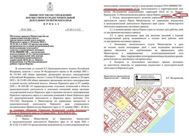 После вмешательства силового ведомства Минимущество пересмотрело решение. В своём приказе министерство прямо ссылается на обращение ФСБ, заставившее чиновников отменить собственный приказ 2024 года о разрешении скандальной стройки.