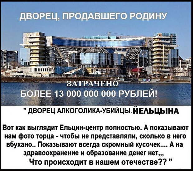 «Ельцин-центр с самого начала был не музеем, а идеологической базой для дискредитации истории России. Всё его существование — это умышленное формирование у молодёжи чувства вины и отвращения к своей стране, продвижение чуждых ценностей под видом просвещения. И всё это финансируется из государственного бюджета при участии иностранных фондов. Пора ставить точку. Ельцин-центр должен быть закрыт. Без сантиментов, без реформ и попыток что-то перепридумать. А в его помещении должны появиться реальные вещи: спортивные секции, кружки, студии для детей, патриотические программы. То, что будет воспитывать сильное, уверенное поколение, а не вечно кающееся и идеологически дезориентированное. Центр позора должен уйти в прошлое вместе с эпохой, которую он воспевает. Это последний бастион пораженческой идеологии, и, кажется, его час наконец пробил», — считает патриотически настроенная общественность.