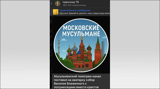 Ведётся борьба не только со всем русским, но и с христианством. Не так давно в сети нашли группу, созданную ваххабитами и сепаратистами, которые занимаются незаконной деятельностью и открыто оскорбляют православных людей. На аватарке сообщества изображён храм Василия Блаженного, но кресты на нём заменены полумесяцами - явное нарушение статьи 148 УК, предусматривающей ответственность за оскорбление религиозных чувств.